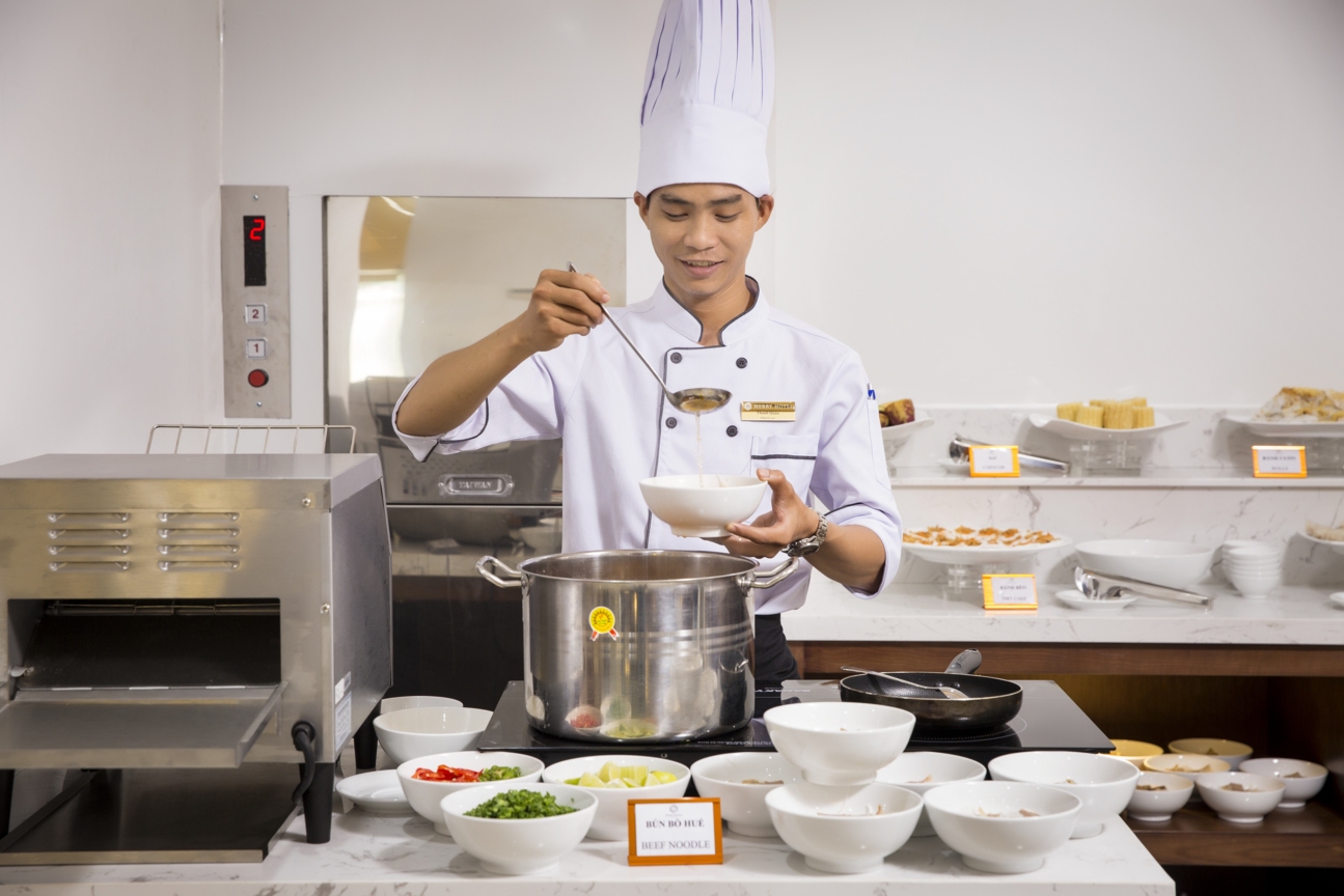 Buffet sáng trên 30 món hằng ngày từ 6:30h – 9h30 với mức giá chỉ từ 99.000vnđ